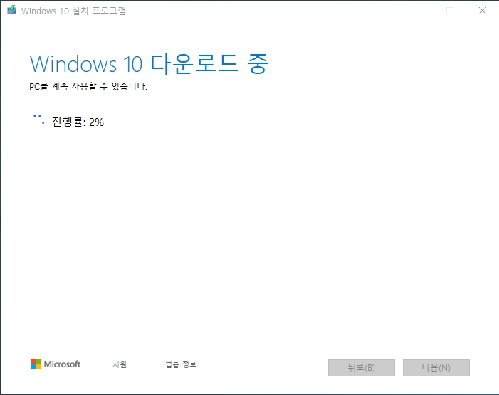 이제 기다리면 업데이트가 완료됩니다. 이 방법을 사용하면 오류없이 업데이트가 가능합니다. 아마도 윈도우 10을 다운로드 받아 최신버전으로 설치를 하는 것 같습니다. 업데이트 오류가 나는 분들은 해보시기 바랍니다.