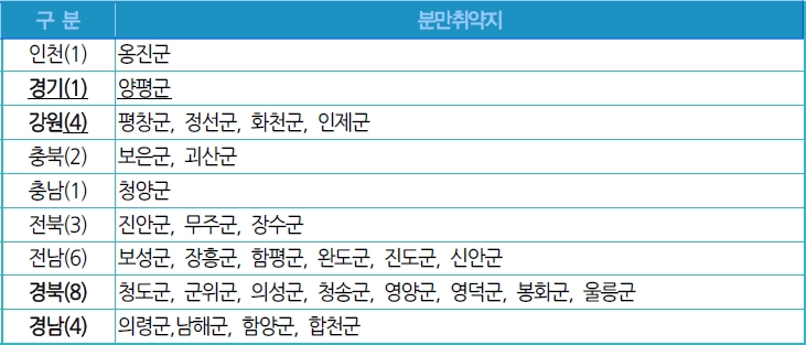 임신 출산 진료비 지원금액은 60만원입니다. 쌍둥이 이상 다태아의 경우는 100만원 지원이 됩니다. 임신과 출산에 관련된 진료를 편리하기 받기 어려운 아래의 분만취약지역에 계속하여 30일 이상 거주하는 경우 20만원 추가 지원이 됩니다.