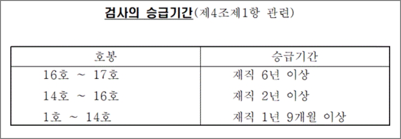검사도 호봉에 따라 봉급이 다릅니다. 다만 일반공무원처럼 1년이 1호봉이 아닙니다. 1호봉부터 14호봉까지는 재직기간 1년 9개월 이상이 되어야 1호봉 승급됩니다. 14호봉부터 16호봉은 2년 이상되어야 1호봉 승급됩니다. 16호봉부터 17호봉까지는 재직기간이 6년 지나야 승급됩니다.