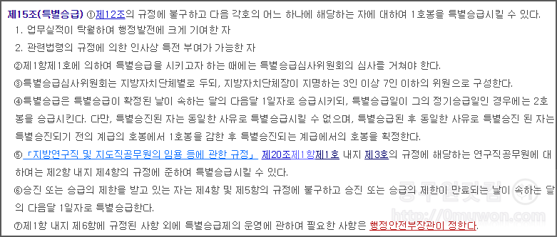 ▼ 지방공무원보수규정 제15조(특별승급)