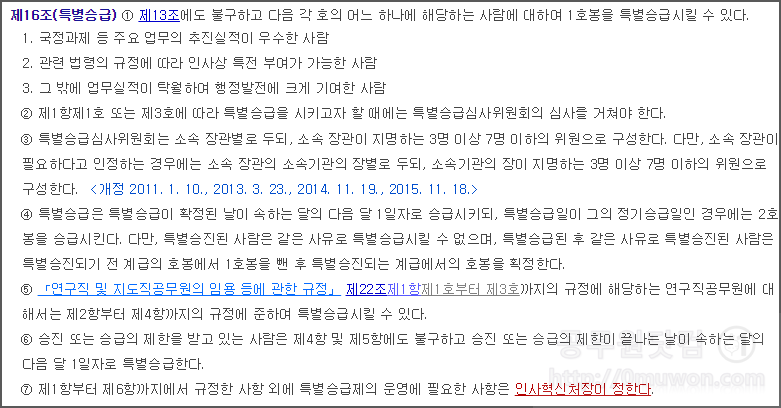 ▼ 공무원보수규정 제16조(특별승급)