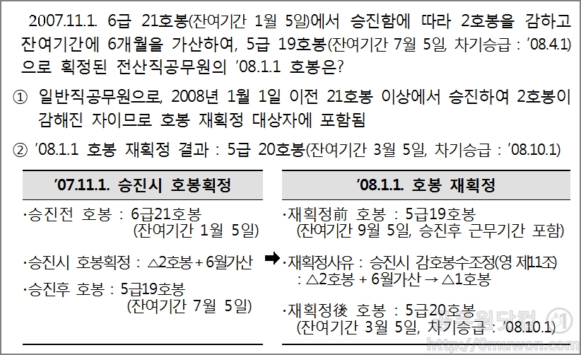 6. 2008년 1월 1일 호봉획정방법 변경에 따른 호봉 재획정