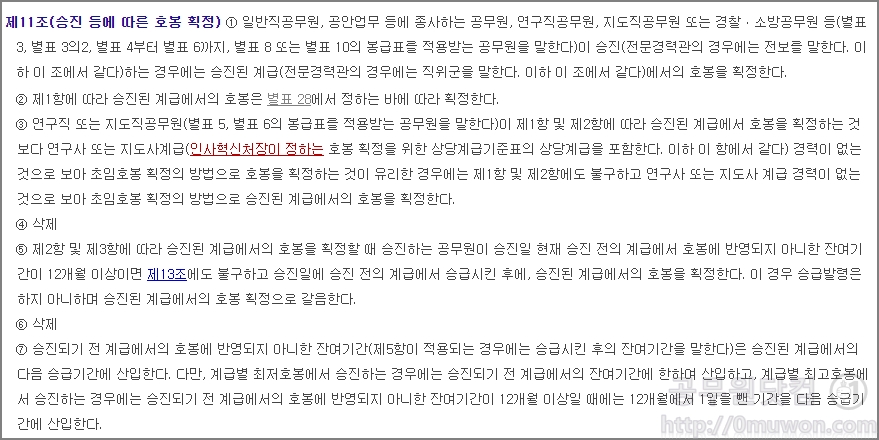 ▼ 공무원보수규정 제11조(승진 등에 따른 호봉 획정)
