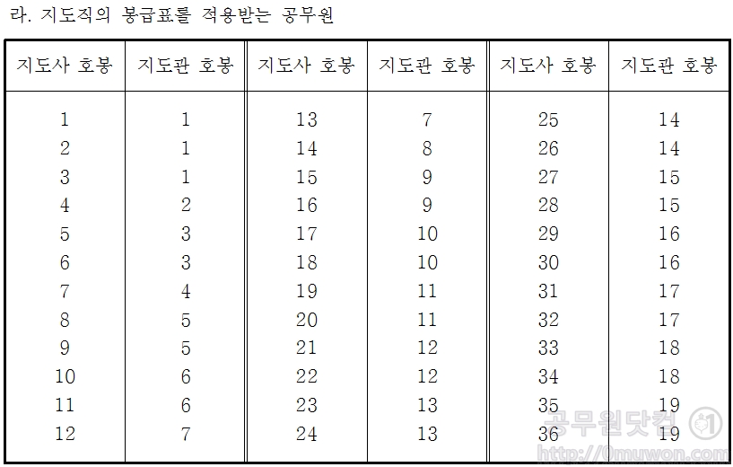 지도직공무원은 공무원보수규정 별표 28 라목의 규정에 따라 승진 후 호봉을 획정합니다.