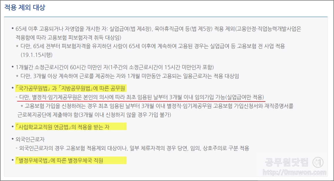 고용보험 적용 제외대상