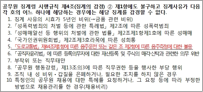 4. 음주운전 징계 감경 제외