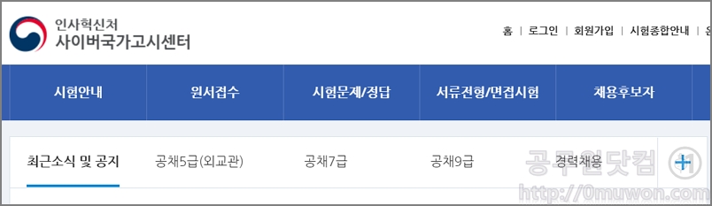 ▼ 인사혁신처 사이버국가고시센터 홈페이지