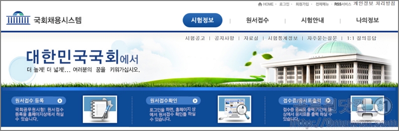 국회직 공무원 원서접수 입니다. 대한민국 국회에서 공무원을 하려는 분들이 참고하면 됩니다. 시험정보, 원서접수, 시험안내 등의 정보가 있습니다. <국회채용시스템 바로가기>