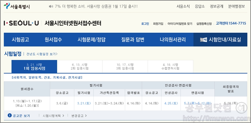 3. 서울시 공무원 인터넷 원서접수 센터
