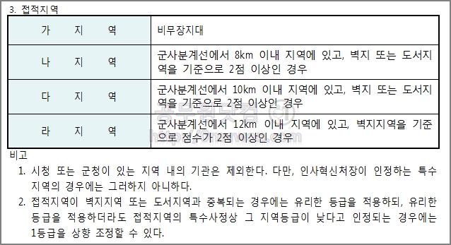 가지역은 비무장지대, 나지역은 군사분계선에서 8㎞ 이내 지역에 있고, 벽지 또는 도시지역을 기준으로 2점이상인 경우입니다.