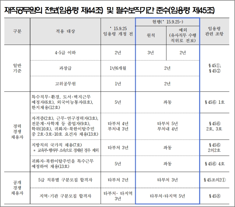 3. 필수보직기간과 전보제한