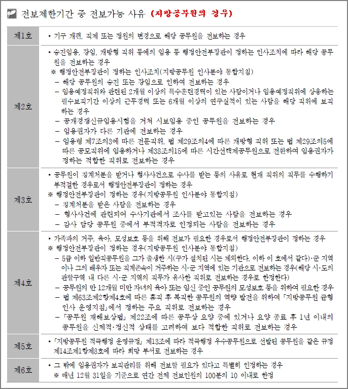 ▼ (지방공무원) 전보제한기간 중 전보가능 사유