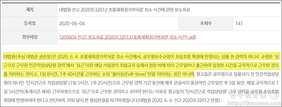2020년 6월에 있었던 대법원 판례입니다. 주요내용만 정리합니다. 자세한 내용은 아래 파일을 받아보세요. 대법원 선고 2020두32012 호봉재획정거부처분 취소 사건 입니다.