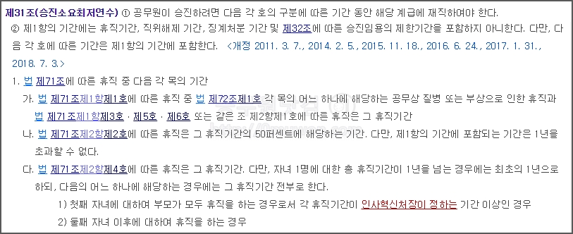 ▼ 공무원임용렬 제31조(승진소요최저연수)