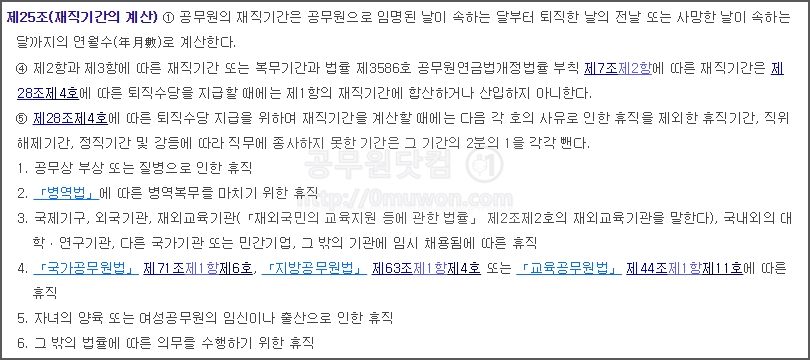 ▼ 공무원연금법 제25조(재직기간의 계산)