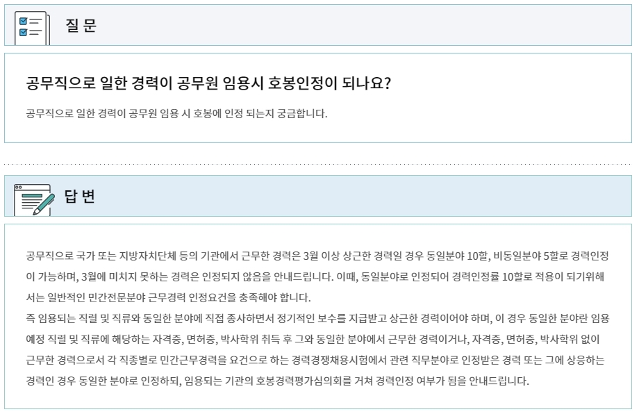 다만, 3월 이상 상근으로 근무한 경력이어야 합니다. 동일분야로 근무한 경우는 10할, 비동일분야로 근무한 경우에는 5할로 경력인정이 가능합니다. 3월 미만의 근무 경력은 호봉으로 인정이 되지 않습니다.