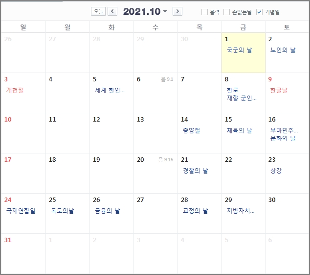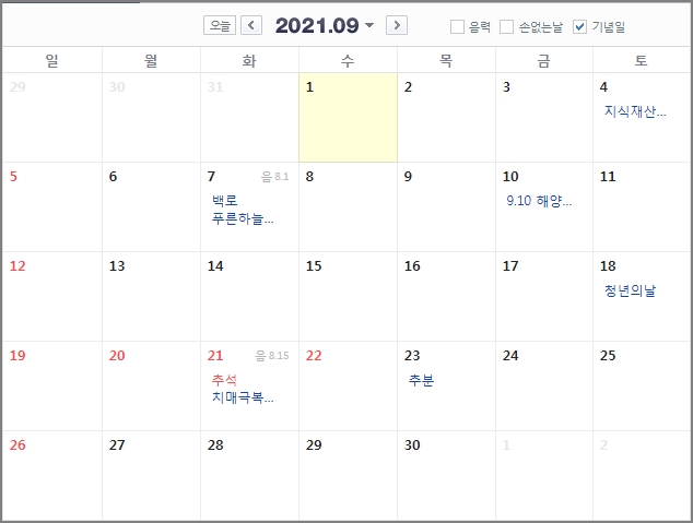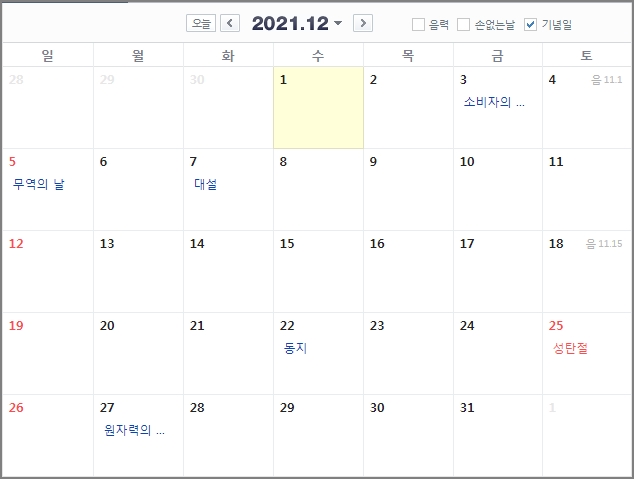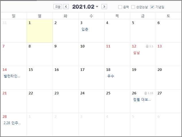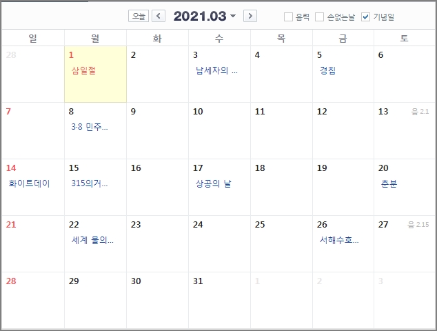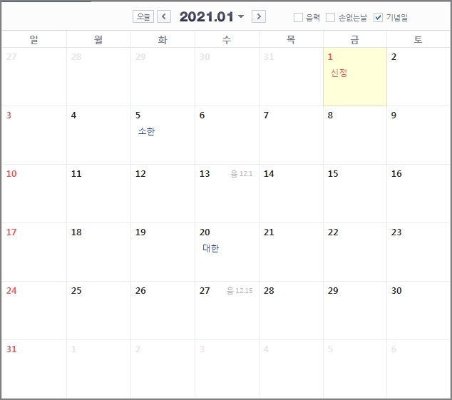 1. 2021년 공휴일