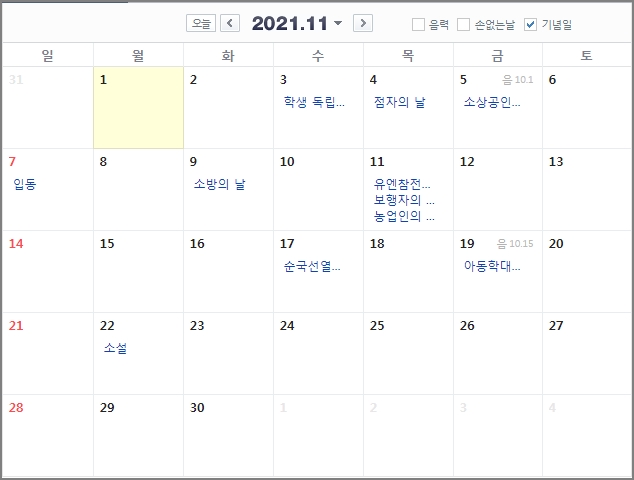 11월에는 공휴일이 없습니다.