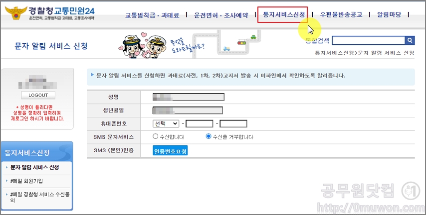 5. 통지서비스 신청하기