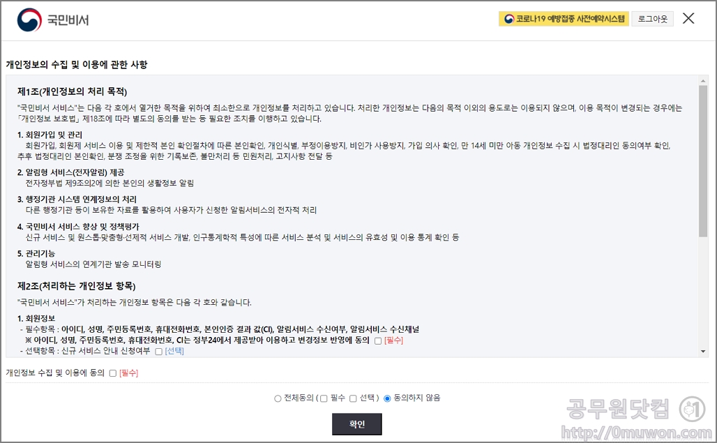 4. 개인정보의 수집 및 이용에 동의를 합니다. 필수만 선택해도 됩니다.