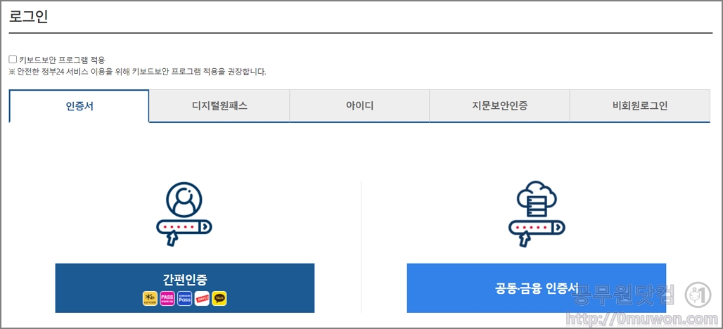 2. 로그인을 합니다. 인증서, 간편인증 등으로 로그인이 가능합니다.