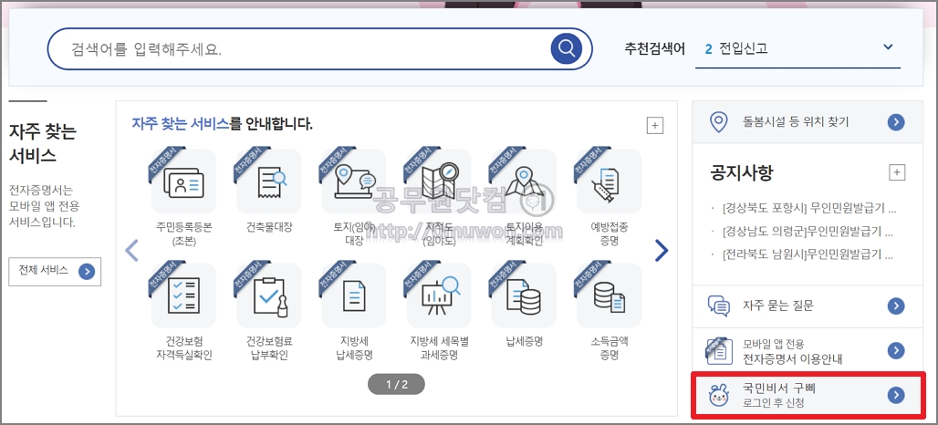 바로 국민비서 구삐 신청하는 법을 알아보도록 하겠습니다. 이용방법은 매우 간단합니다.