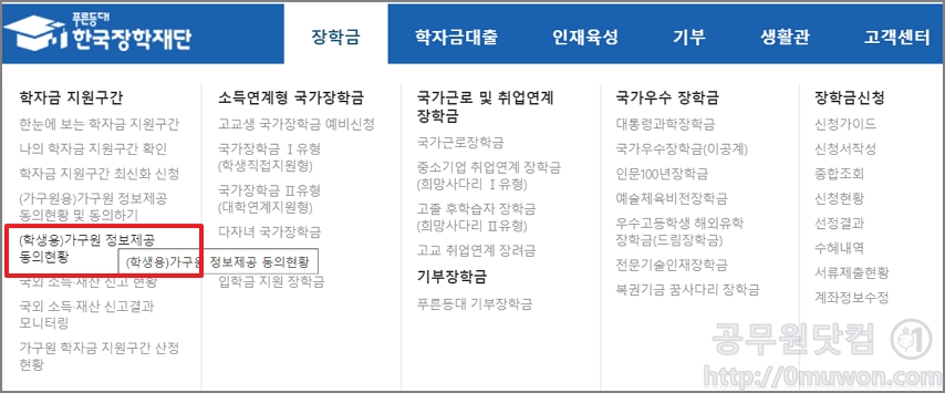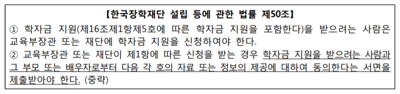 학자금지원을 위한 소득 및 재산 파악을 위해 「한국장학재단에 관한 법률 제50조」에 따라 학생 및 가구원의 정보제공 동의가 반드시 필요합니다. ▼ 국가장학금 신청방법