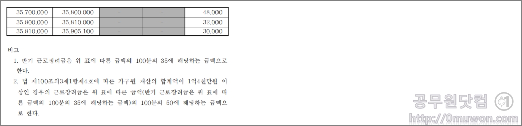 반기장려금의 경우에는 산정표의 35%를 지급합니다. 그리고, 재산의 합계액이 1억 4천만원 이상의 경우에는 근로장려금 산정표의 50%를 지급하며, 반기 장려금인 경우에는 35%의 절반을 지급합니다.