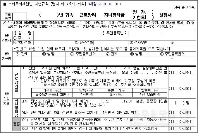 ▼ 근로장려금, 자녀장려금 신청서 다운로드