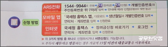 안내문을 받지 못한 경우에는 세무서를 방문하여 서면신청하면 됩니다. 우펀접수는 불가합니다.