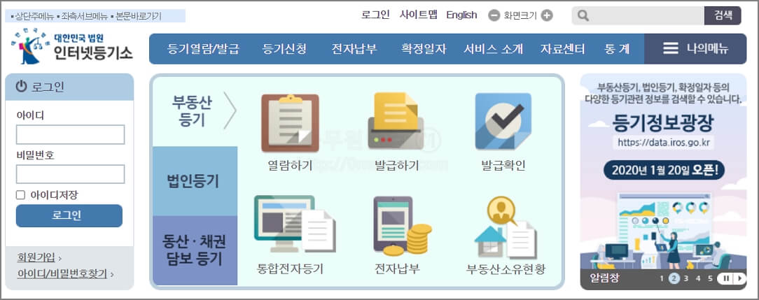 계약 전에 '인터넷등기소'에서 등기부등본을 열람하세요.