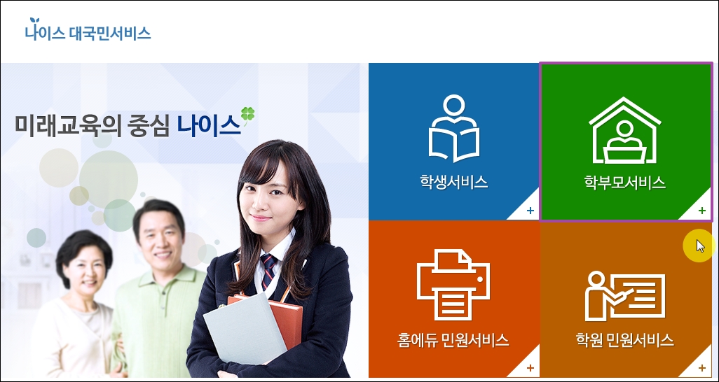 나이스 홈페이지 입니다. 학생서비스, 학부모서비스, 홈에듀 민원서비스, 학원 민원서비스 등을 이용할 수 있습니다.