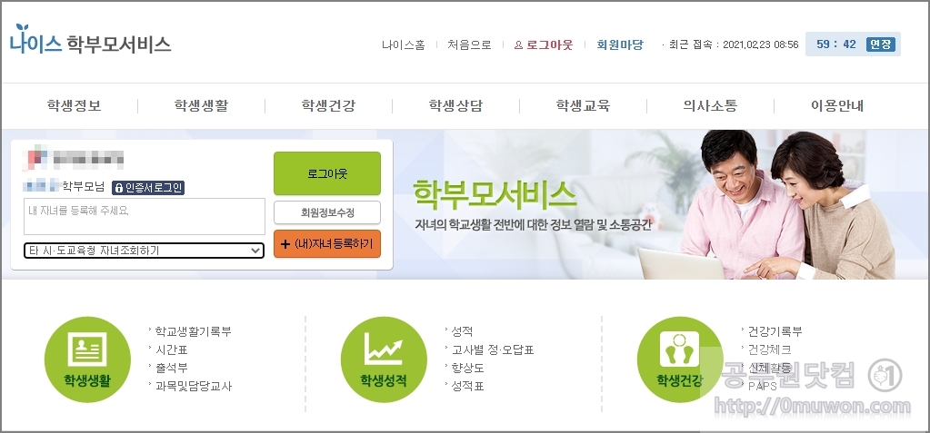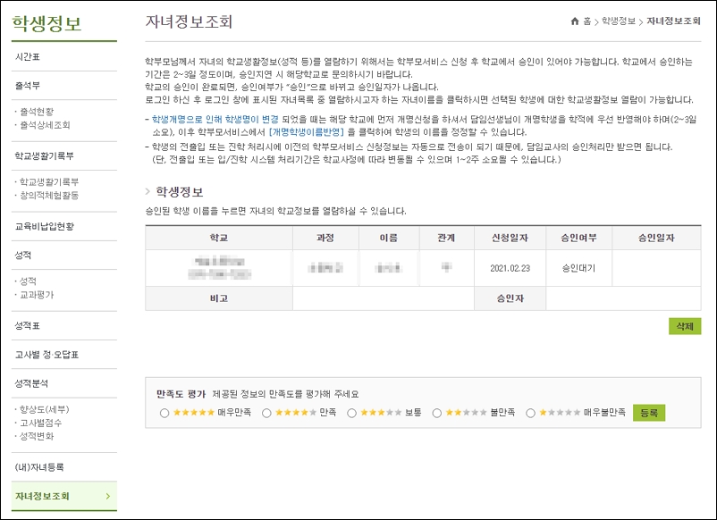 학생 본인이 직접 조회도 가능하며, 학부모가 자녀의 학교 생활 정보도 확인이 가능합니다.