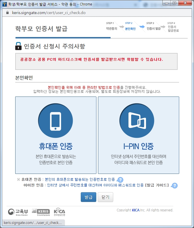 3. 본인확인을 합니다. 휴대폰 인증 또는 아이핀 인증으로 본인인증을 완료하면 됩니다.