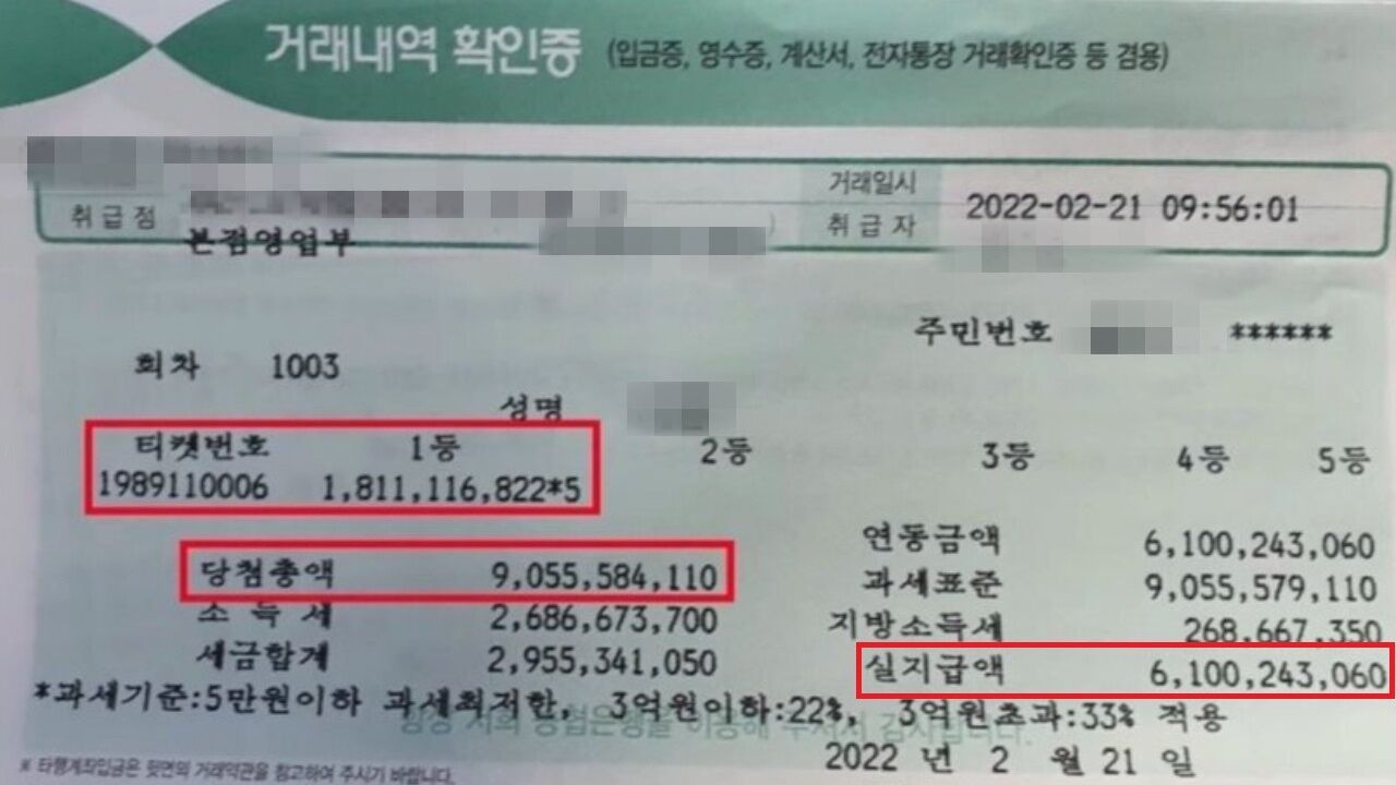로또 1등 거래내역 확인증입니다.