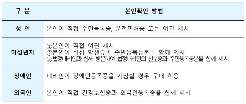 대리구매에 따른 불편을 최소화하기 위해 대리구매 범위가 확대되었습니다. 당초 계획에는 위 그림에서도 보듯이 미성년자도 부모와 동반을 해야만 구입할 수 있도록 했었습니다. 10세 이하 어린이, 80세 이상 어르신까지 확대가 되었습니다.