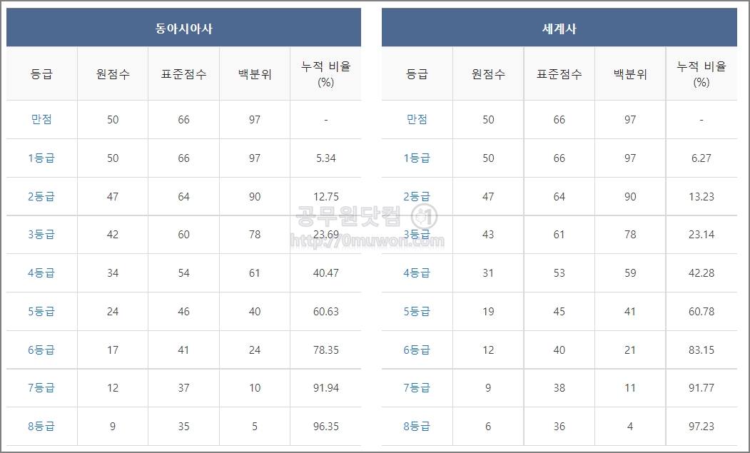 ▼ 동아시아사 등급컷, 세계사 등급컷