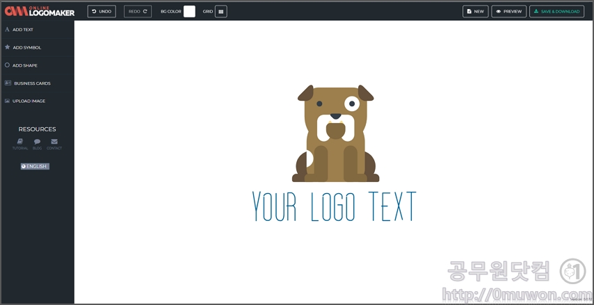 영문사이트입니다만, 한국어를 선택하면 한글을 지원합니다. 사용방법은 다른 사이트와 다르지 않습니다. 글자를 추가하고, 심볼을 추가하고 모양을 추가하면 됩니다. 이미지를 업로드 해서 사용도 가능합니다. 분류별로 심볼을 제공하기 때문에 다양한 로고를 쉽게 만들 수 있습니다. <온라인 로고 메이커 바로가기>