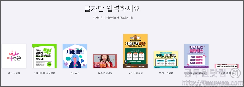 처음 소개하는 사이트는 미리캔버스입니다. 다양한 템플릿이 존재합니다. 글자만 입력해도 이쁘고 간단한 로고를 만들 수 있습니다. 만드는 것은 회원가입을 하지 않아도 됩니다. 다만, 제작된 것을 다운로드 받으려면 회원가입을 해야 합니다. 로고 뿐만아니라 PPT, 카드뉴스, 유투브 썸네일, 포스터, 인스타그램 게시물, 명함 등도 만들수 있기 때문에 회원가입을 해서 이용하는게 나쁘지는 않은 거 같습니다. <미리캔버스 바로가기>