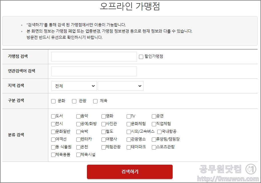 문화누리카드 사용이 가능한 오프라인 가맹점 입니다. <▼오프라인 가맹점 바로가기>