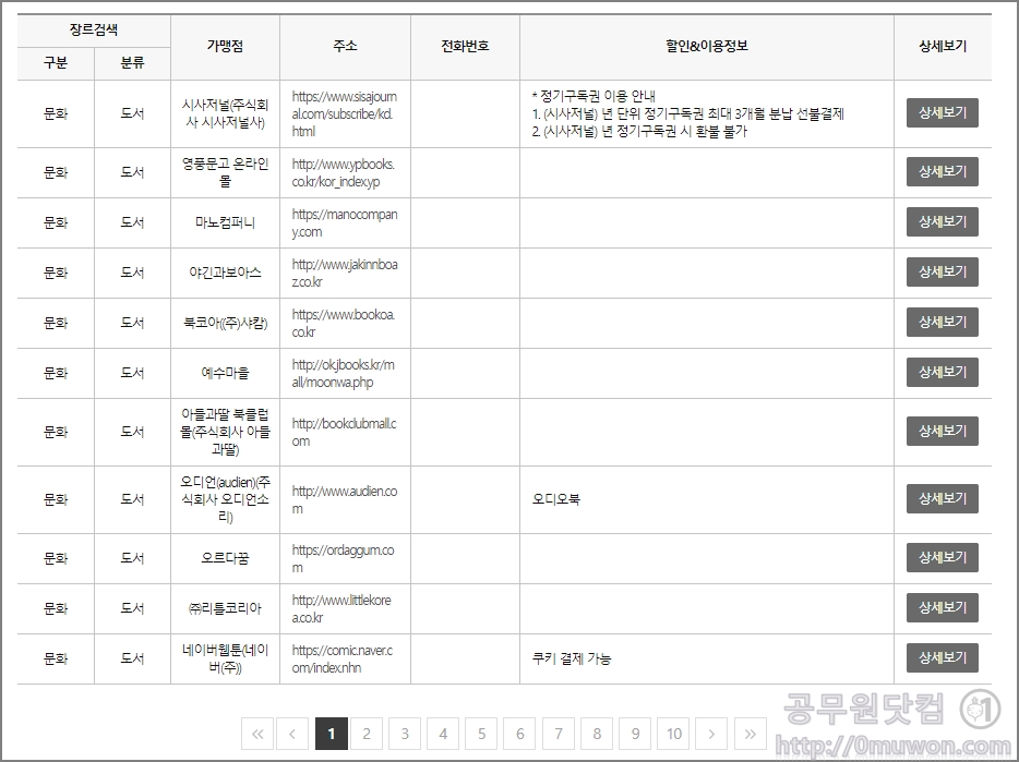 검색하기를 누르면 아래와 같이 온라인 가맹점이 나옵니다. 주소를 클릭해서 이용을 하면 됩니다.
