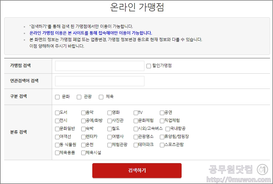 검색하기를 누르면 아래와 같이 온라인 가맹점이 나옵니다. 주소를 클릭해서 이용을 하면 됩니다.