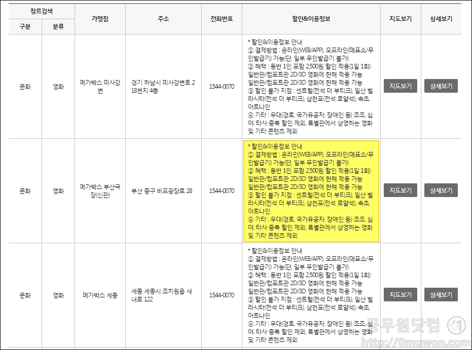 4. 우대(경로, 국가유공자, 장애인 등) 조조, 심야, 타사 중복 할인 제외가 됩니다. 특별관에서 상영하는 영화 및 기타 콘텐츠도 제외가 됩니다.
