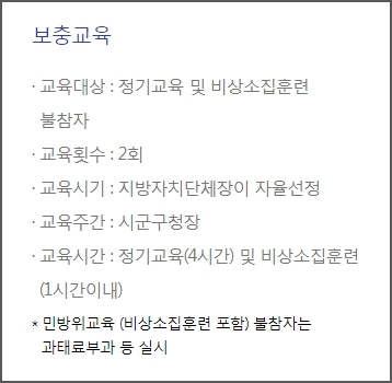 정기교육 및 비상소집훈련 불참자는 보충교육을 받아야 합니다.