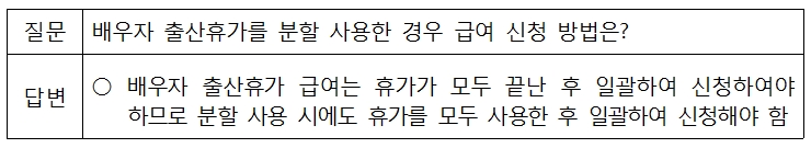 ▼ 배우자 출산휴가를 분할 사용한 경우 급여 신청 방법은?