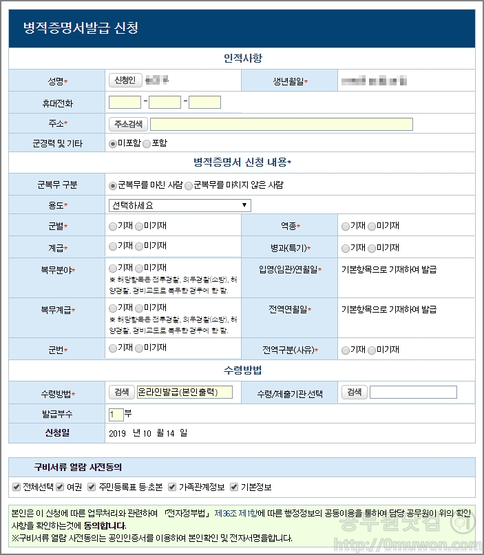 3. 병적증명서 발급 방법