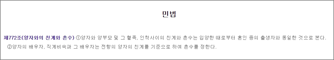 ▶ 민법 제772조제1항에 의하면 양자와 양부모 및 그 혈족사이의 친계와 촌수는 입양한 때로부터 혼인중의 출생자와 동일한 것으로 본다라고 규정되어 있어 입양의 경우 양자와 양친 사이에는 자연혈족의 경우와 동일하게 부양관계나 상속관계가 인정되므로 양부모는 법률상 부모로서 당연히 사망조위금 지급범위에 포함됩니다.