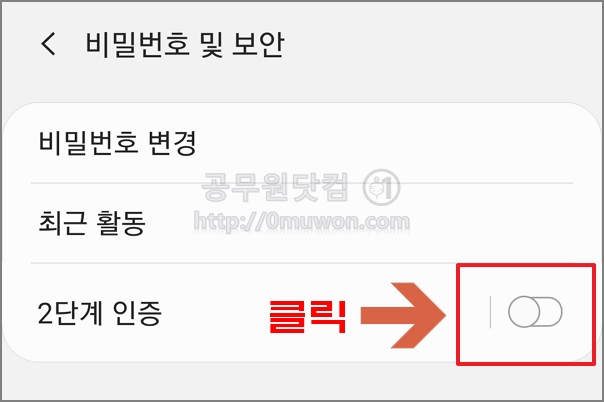 ▼ 2단계 인증을 클릭하여 활성화합니다.