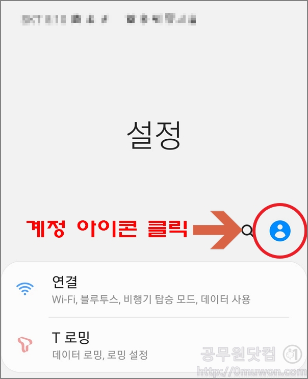 ▼ 핸드폰에서 설정 메뉴로 접속합니다. 계정 아이콘을 클릭합니다.