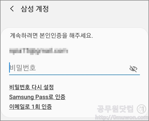 ▼ 삼성계정 본인인증을 해주세요. 비밀번호를 입력합니다. 삼성계정을 확인합니다.
